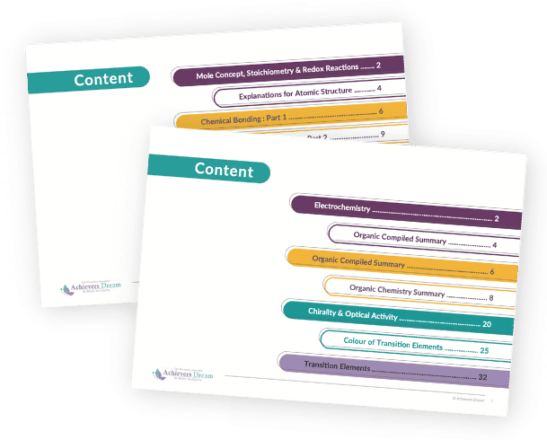 Introducing Achievers Dream's JC Chemistry Summary Cheat Sheets Book – the ultimate resource to give you the unfair advantage you need to master Chemistry and finally score that elusive A!