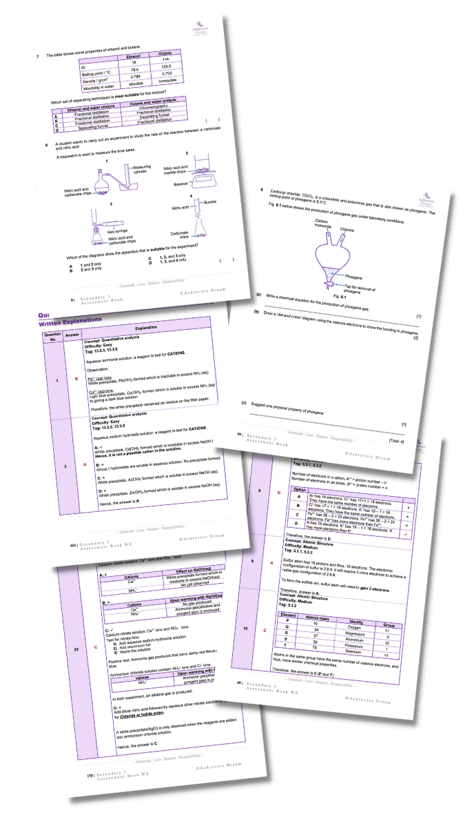 [NEW] Sec 3 Pure Chem Assessment Books: Questions & Standard Answers + Detailed Solutions & Videos